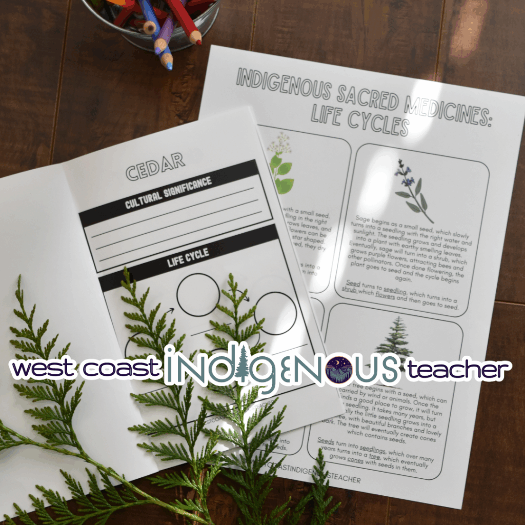 Explore the cultural significance and life cycle of the Indigenous Sacred Medicines — cedar, sage, tobacco, and sweetgrass. This resource includes a lesson, beautiful posters, and a booklet activity, making it ideal for outdoor learning or Indigenous art projects.